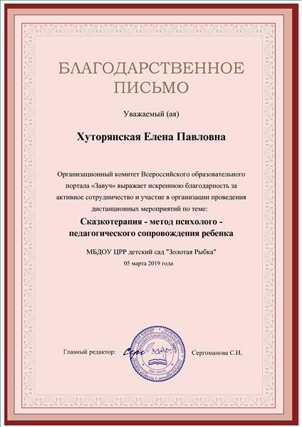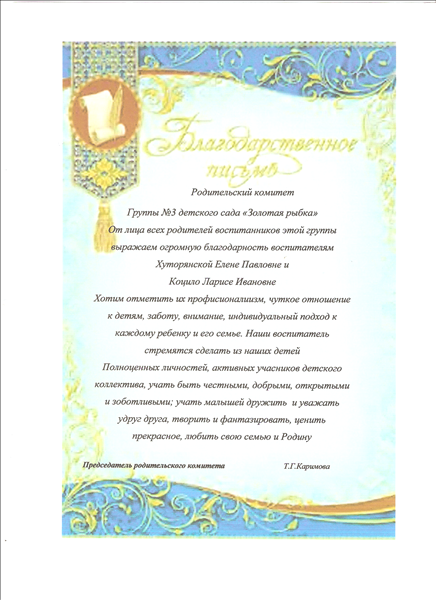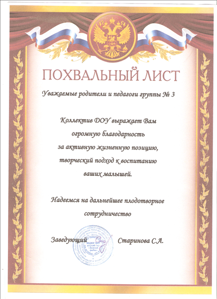Благодарственное письмо за участие в акции "Игрушки для детей из деревни Лямино"