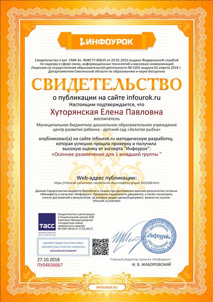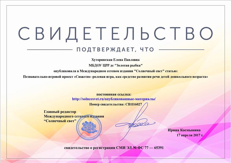 Свидетельство о публикации (сетевое педагогическое сообщество)