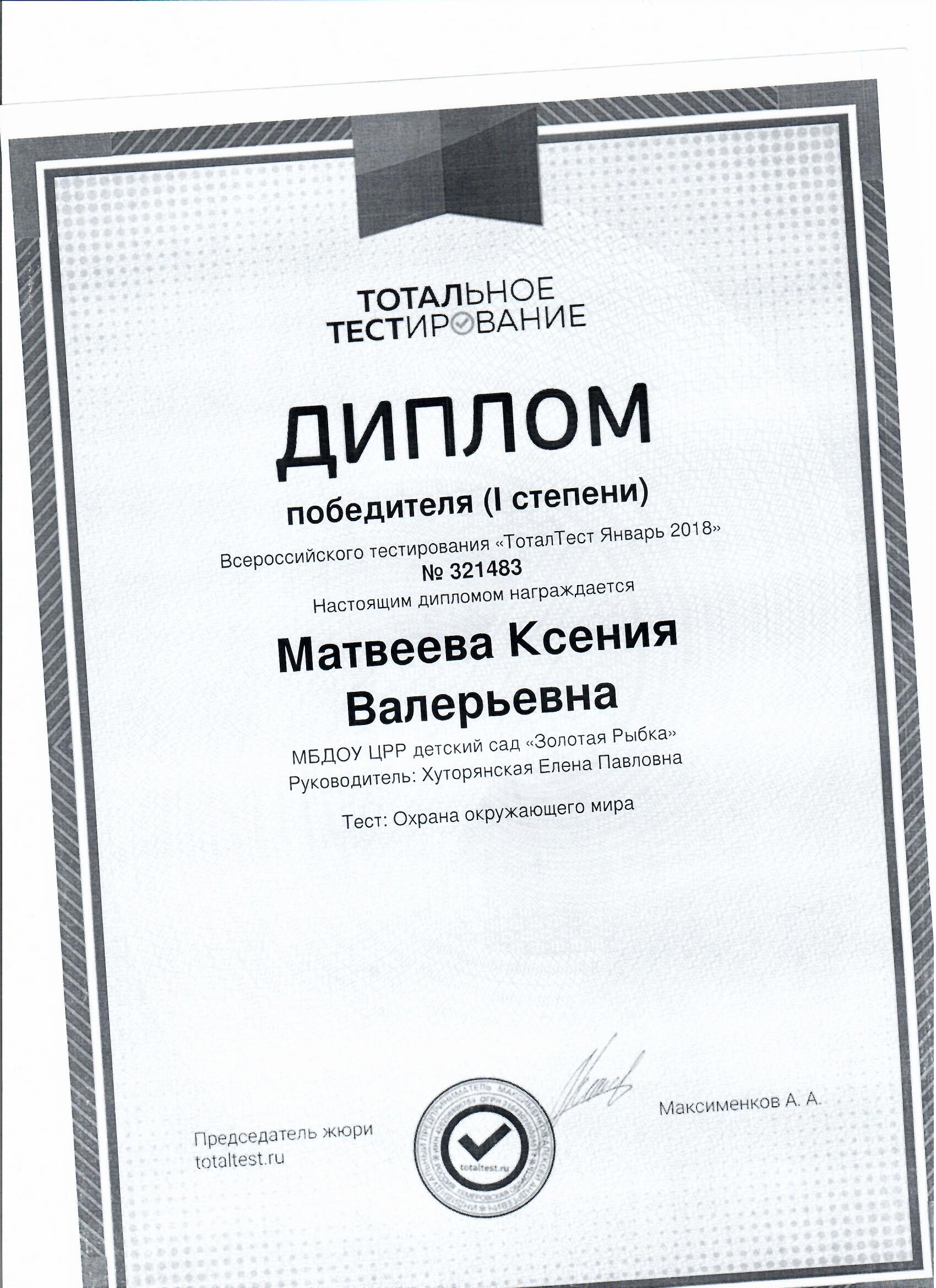 диплом первой степени